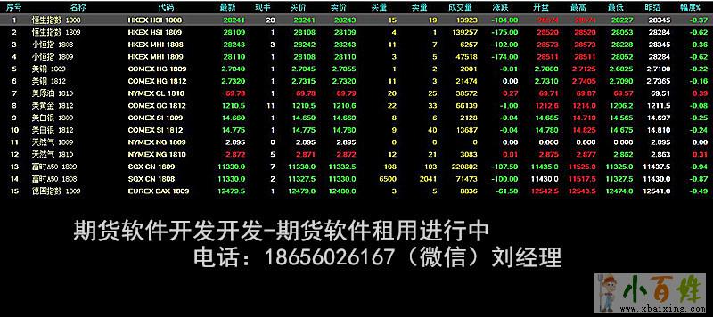 欢迎各位新老行业内朋友来电咨询期货软件租用事宜x~b~a~i~x~i~n~g~c~o~m。期货软件租用联系电话:18656026167(微信同号)刘经理 QQ745758042 专注行业软件开发,丰富的实践处理经验,遍布完善的售后服务网络,您的满意是我们最终的追求。本公司提供期货软件租用服务,一整套软件可按月租着使用www.xbaixing.com。软件稳定好用收费不贵,制作oem贴牌周期短。确定需求之后,可以在最快的速度将整套的软件制作完善小_百_姓_网。